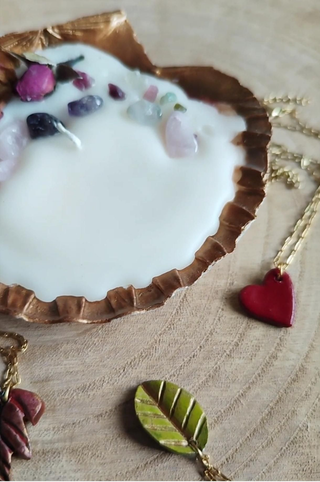 Une fois la bougie consumée, récupérez-la, avec le bijou ainsi que les petites pierres naturelles qui l'accompagnent, nettoyez-les et conservez les ❤️
